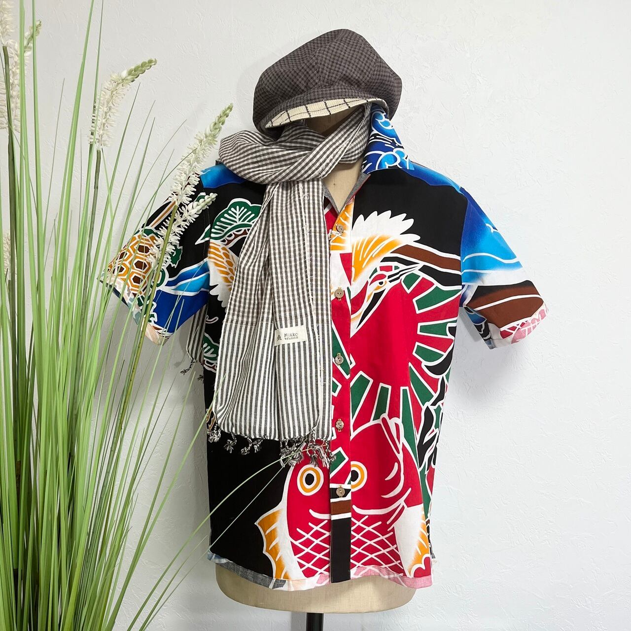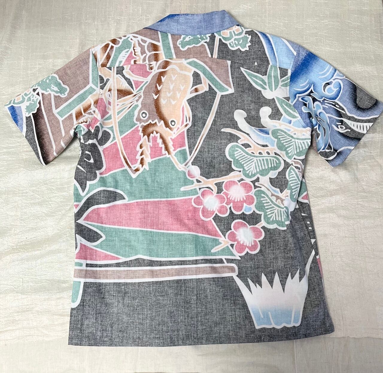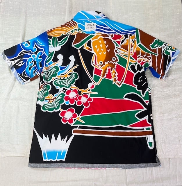 鮮やかなカラフルさで周囲の視線を惹きつける「大漁リバーシブルアロハ」は、大漁旗柄生地を使用したアロハシャツです。