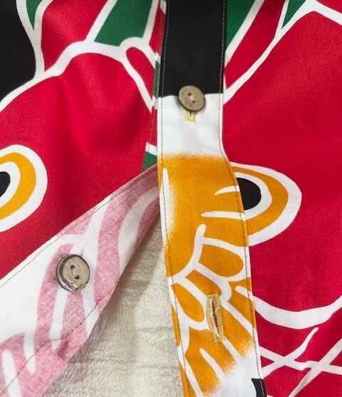 鮮やかなカラフルさで周囲の視線を惹きつける「大漁リバーシブルアロハ」は、大漁旗柄生地を使用したアロハシャツです。