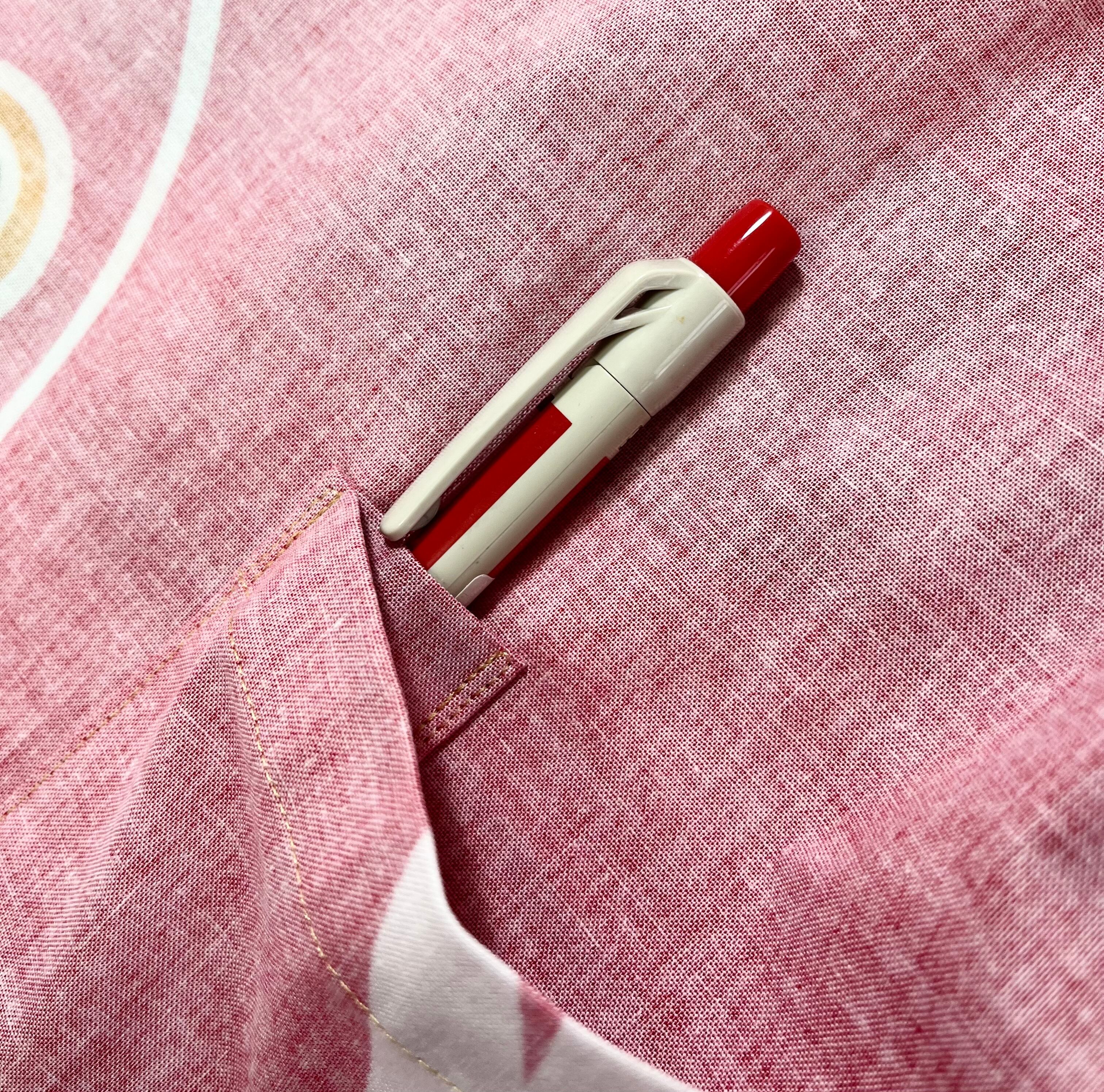 生地の裏を使ったのがリバーシブルアロハの「オモテ」です。ボタンが両面についているので右前も左前も自由、オモテもウラも「表」で両面着られて男女も選びません。変わり型の前ヨーク、両面ボタンはアロハの定番のココナツボタン、前身ごろの柄が隠れない位置でペンも入る腰ポケットなど、こだわりディティールいっぱい、カジュアルシーンにぴったり合う一着です。
